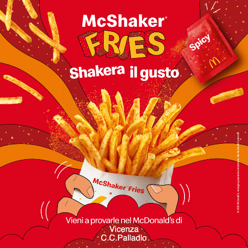 Versa, shakera e assapora le nuove McShaker® Fries SPICY🍟🌶️🔥: le patatine come non le hai mai assaggiate prima, dal gusto piccante.